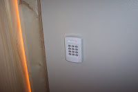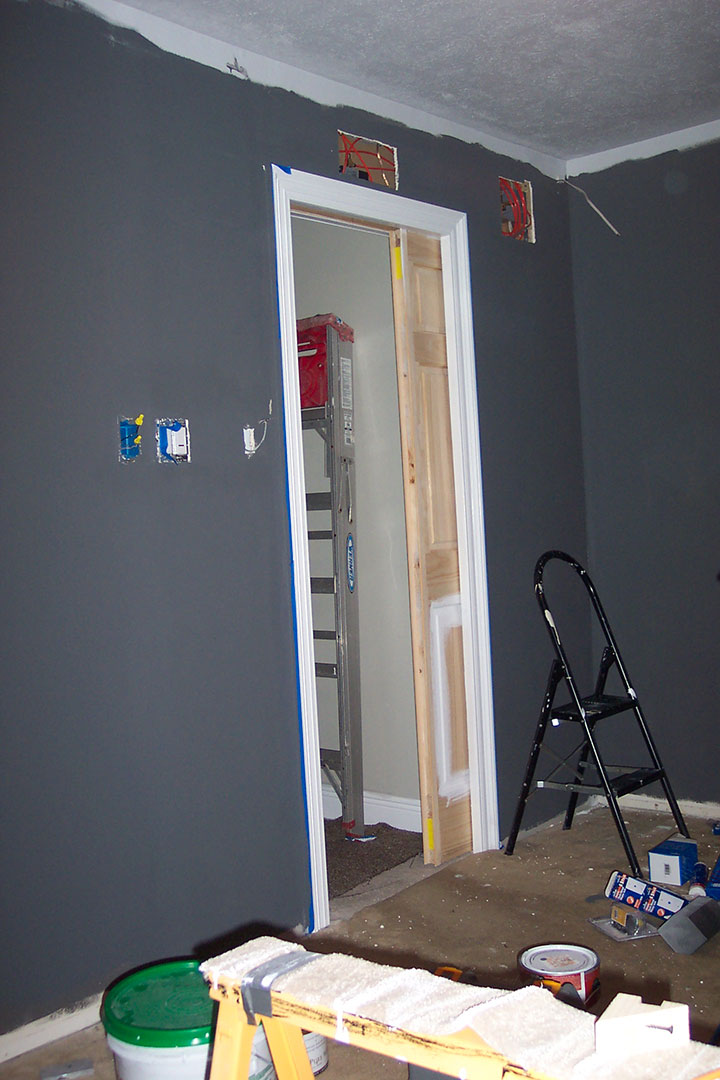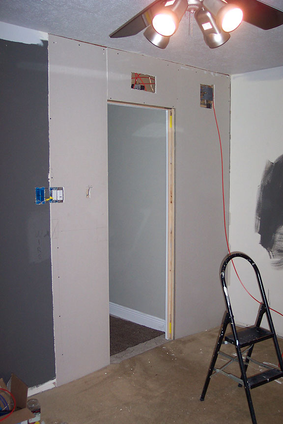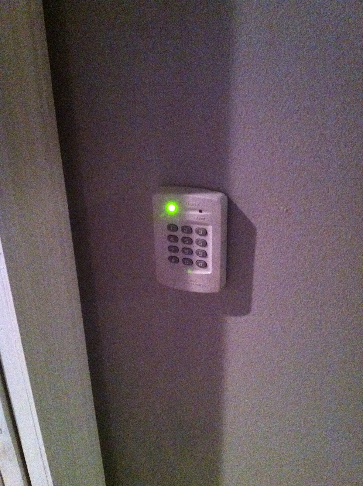 Some strips of drywall, mud, and trim take care of the hallway with no problem. Of course you know what the keypad is for. It was one of those things I had laying around from back in the day when Radio Shack was actually cool. After about 8 years, I had finally found the perfect application for that piece of alarm equipment I purchased for no reason.